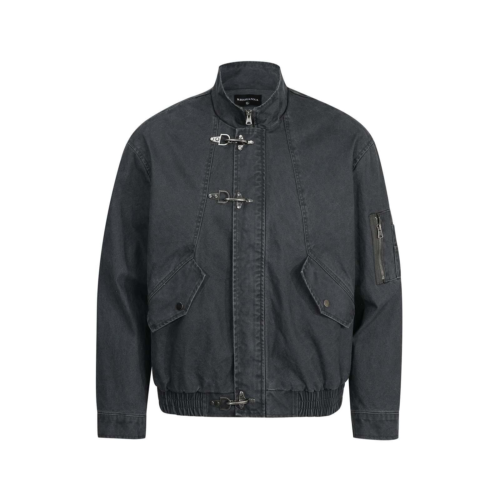 American Retro Autumn And Winter High-end Washed Vintage Design Stand-collar Casual Jacket