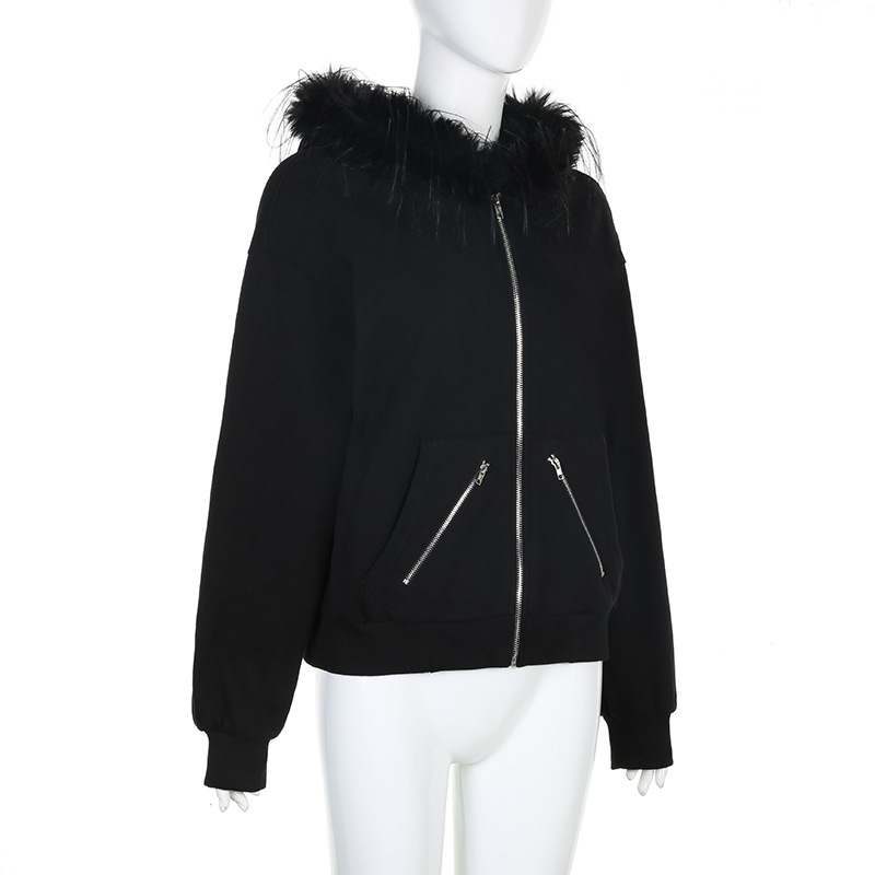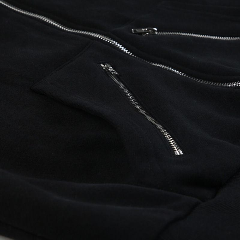 Black Zipper Divided Print Fleece Hooded Sweatshirt (Copy) (Copy)