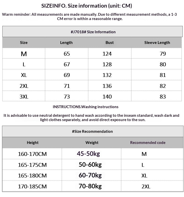 Sizes: M, L, XL, XXL, XXXL